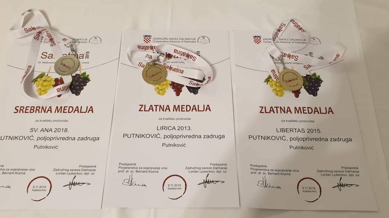 Na 29. Sabatini koja je ove godine održana u Trogiru, PZ Putniković je osvojila dvije zlatne medalje za vino Lirica 2013., vino Libertas 2015. Osvojena je i srebrna medalja za vino Sveta Ana 2018.